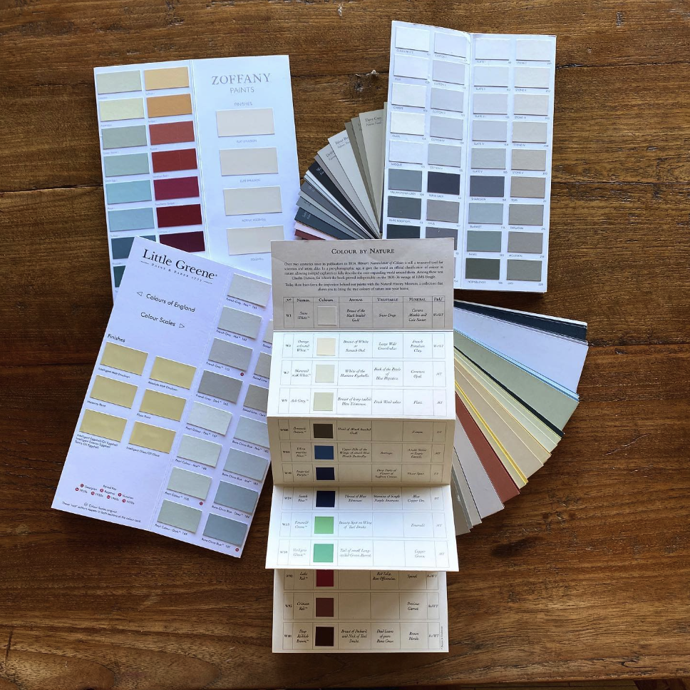 Colour schemes and physical sample swatches.